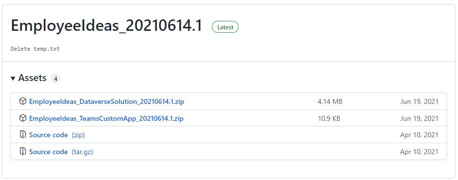 | Employee Ideas | https://github.com/OfficeDev/microsoft-teams-apps-employeeideas/releases |
