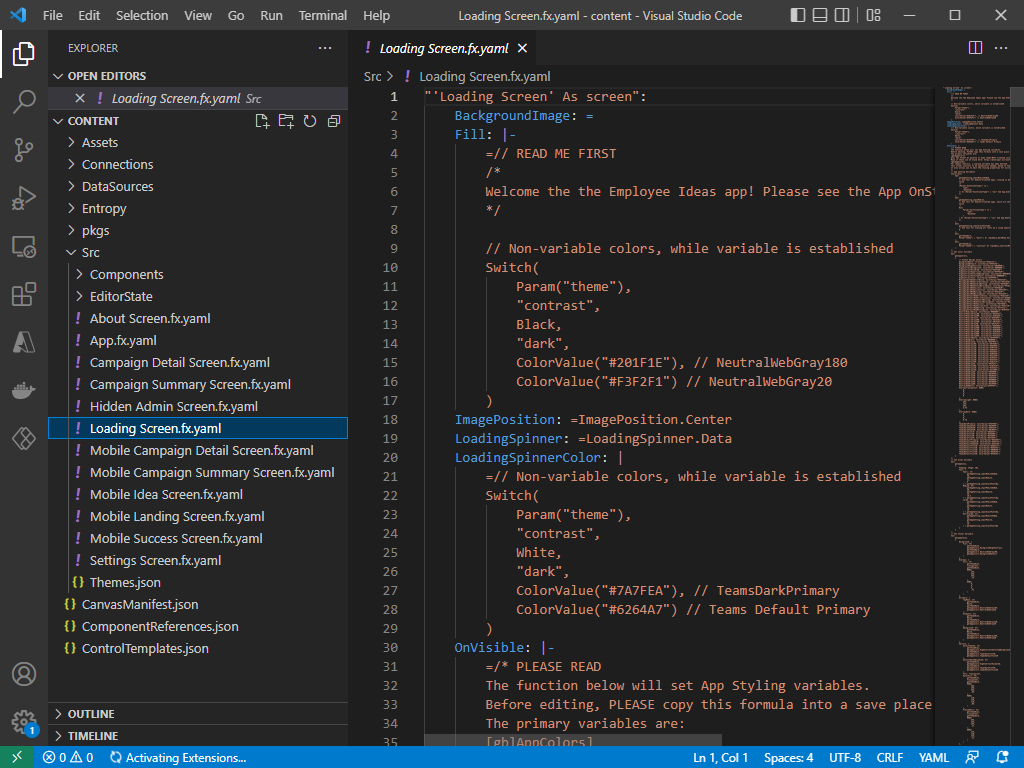 The result should look something like the below screenshot. You can open the directory in which you’ve unpack the msapp file in VS Code.